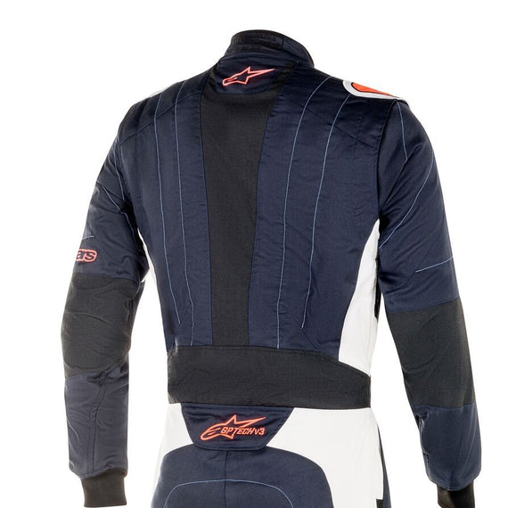 The GP Tech v3 features an outer shell twill material developed exclusively for Alpinestars which is combined with an innovative aramidic base knit lining for optimum levels of comfort, protection, light weight and comfort. Thanks to the introduction of the aramidic base lining with an open weave structure, this suit is superbly breathable, and these levels are further enhanced by the breathable panels on the side. The GP Tech v3 also incorporates lightweight stretchable panels at the center back, lower back, elbow, crotch and knee zone to provide great flexibility both in and out of the car.